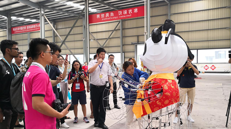 国韵子公司总经理助理李斌、国际级部经理助理蔡琳霖向远道意欲的的青年人们详实推荐了攀枝花灯会经验和如今科技创新下的彩灯学识。