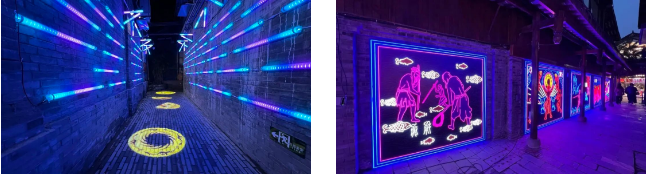 灯展还合理利用薄厚街巷特有的建筑工程方法,在“宽径”双边的棚顶上,用光雕、LED、视频互动投影屏幕等方法创建了有80米的“日子文化长廊”。随客户参观企业的步伐,古蜀人祭祀、渔猎、制陶、冶金行业、治玉等活动细节描写如连坏画般渐次现身。